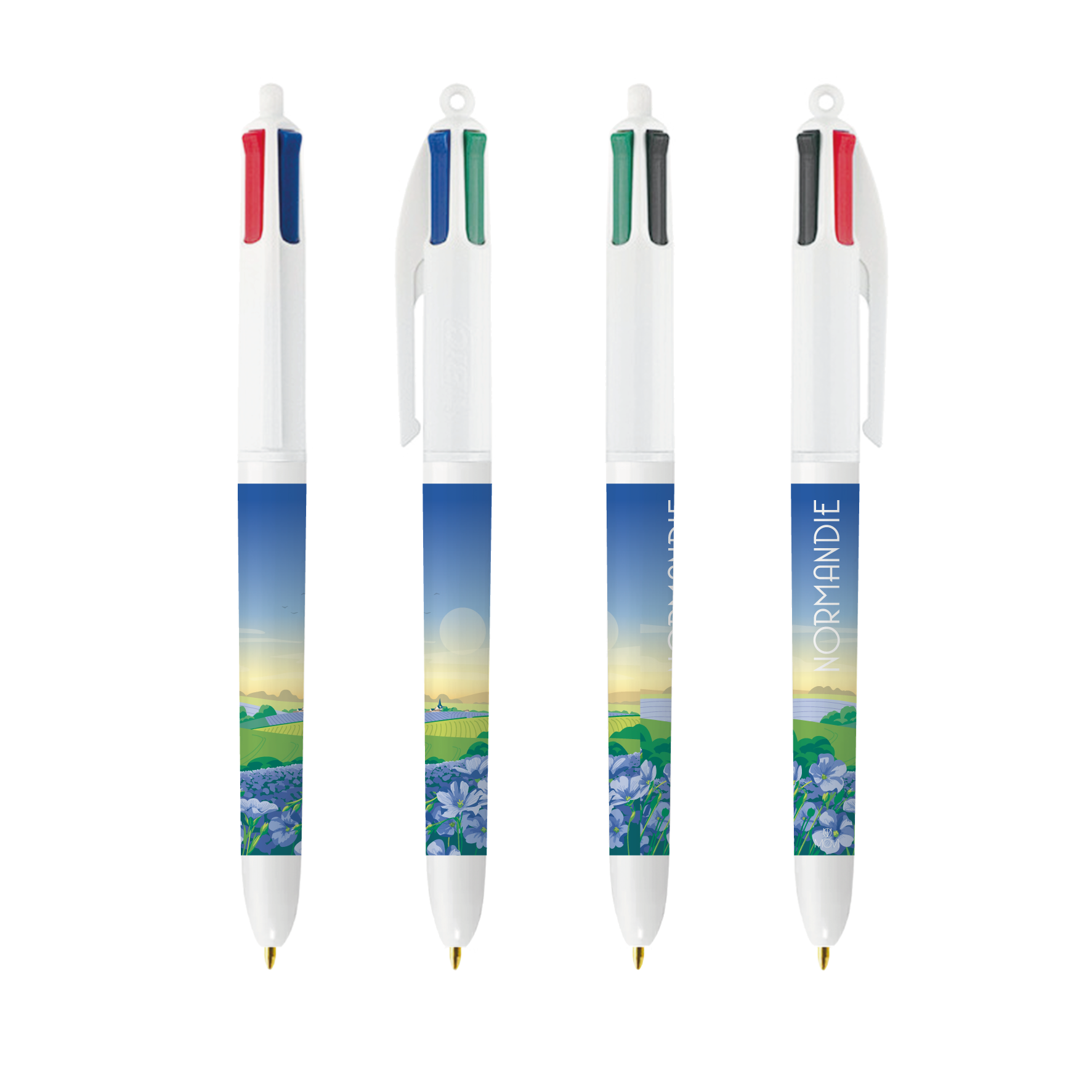Notre collection exclusive réinterprète l'emblématique BIC 4 couleurs en le transformant en un véritable carnet de voyage visuel. Chaque stylo rend hommage à un paysage emblématique de la Normandie à travers une illustration originale à 360°.